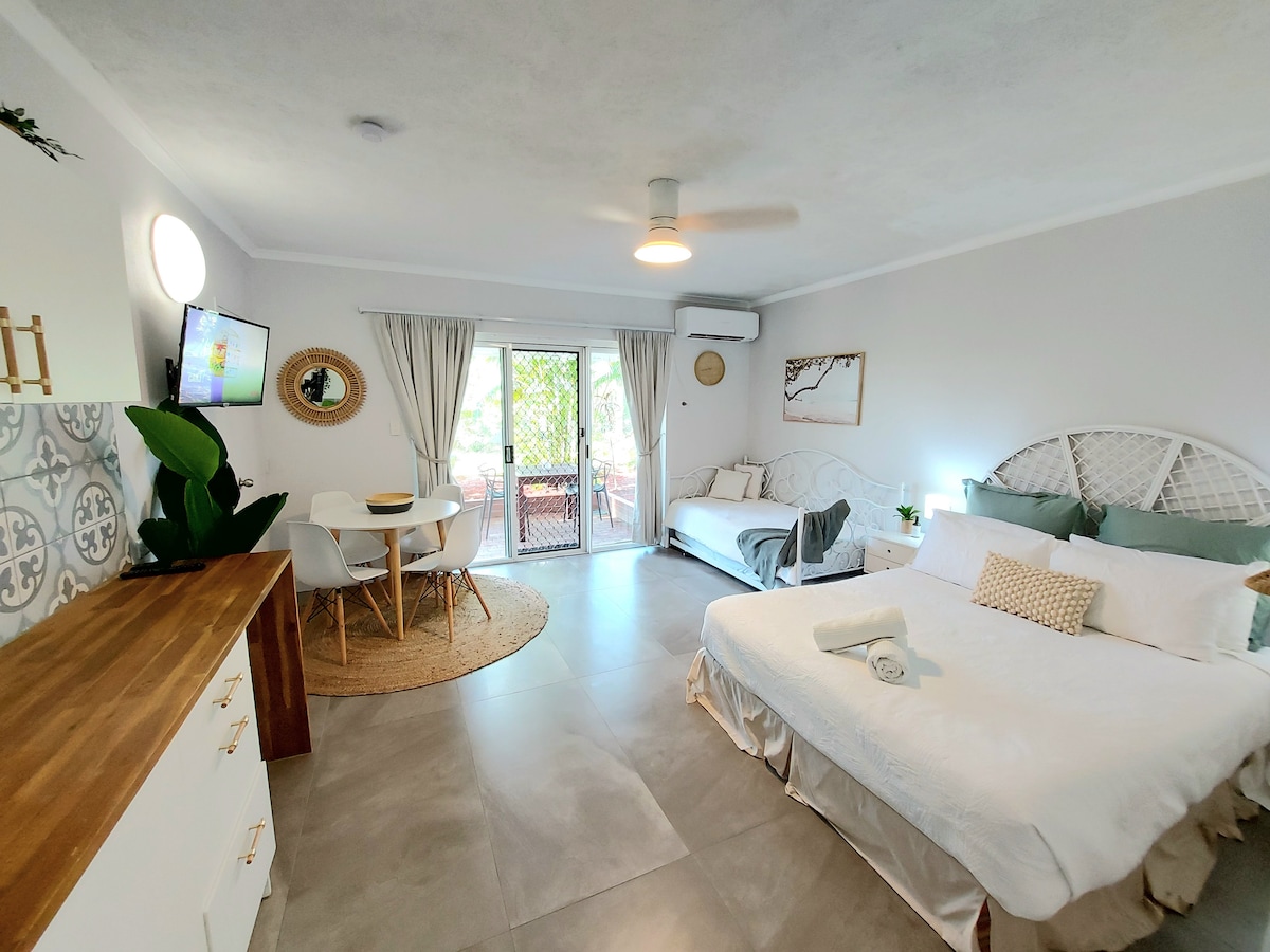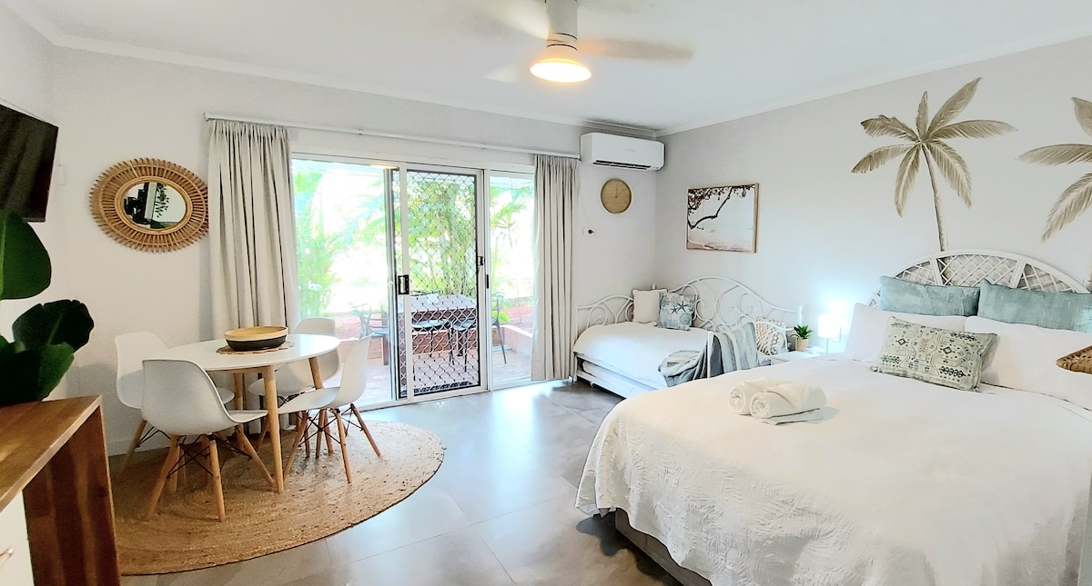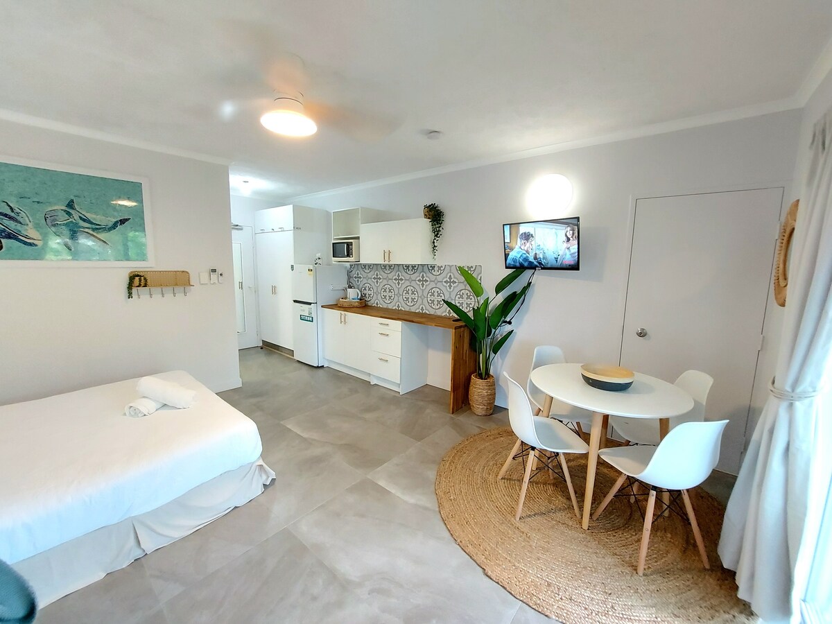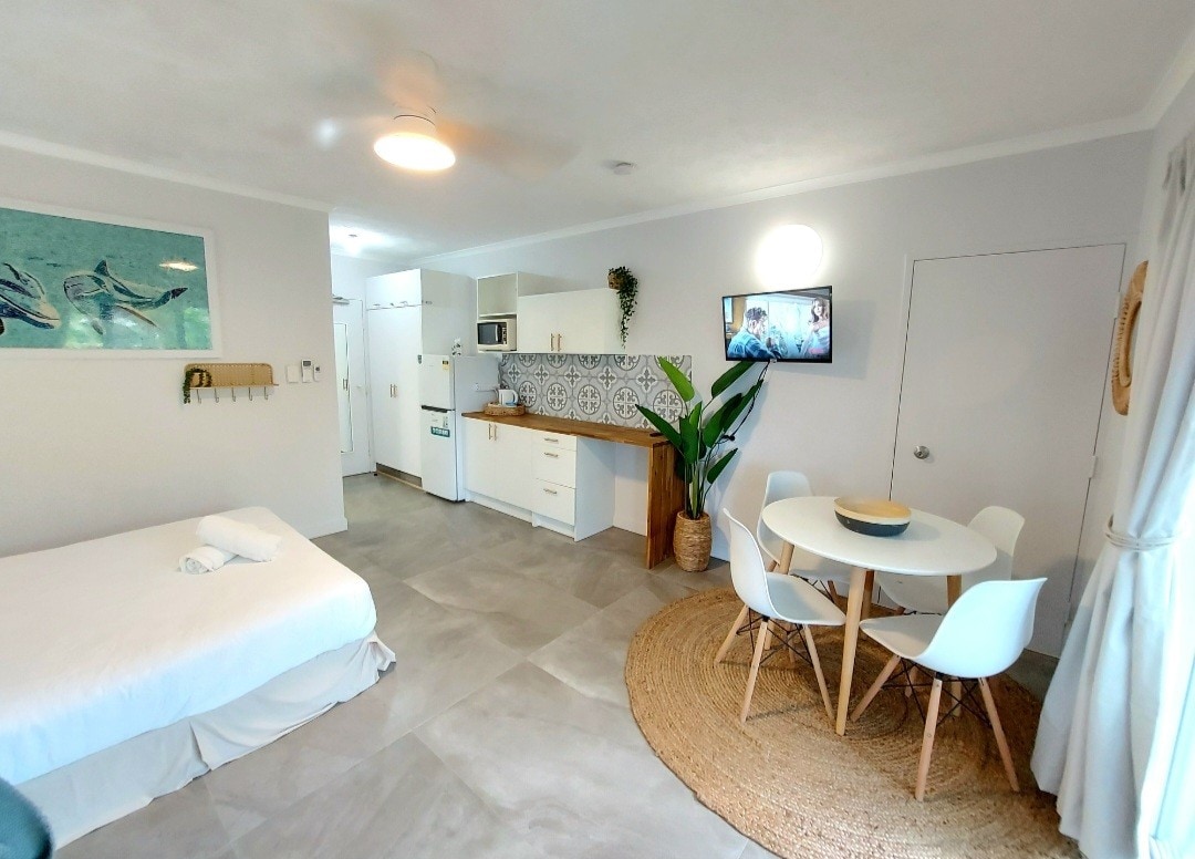 Dolphin HeadsWithin the resort there are open grassy areas to relax, three resort style pools to enjoy, a communal bbq are which guests are free to use as well as the onsite bar and restaurant. Our room includes all linen, towels along with basic cleaning supplies. The kitchenet within the room offers a toaster, kettle, microwave a hotplate and basic cutlery/crockery and utensils. As there is no sink within the kitchen a collapsable tub is supplied for dishes.